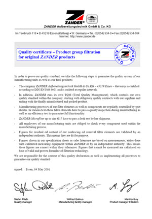 젠더(Zander) ISO 및 필터 엘레멘트