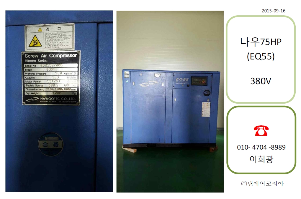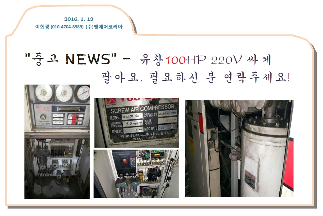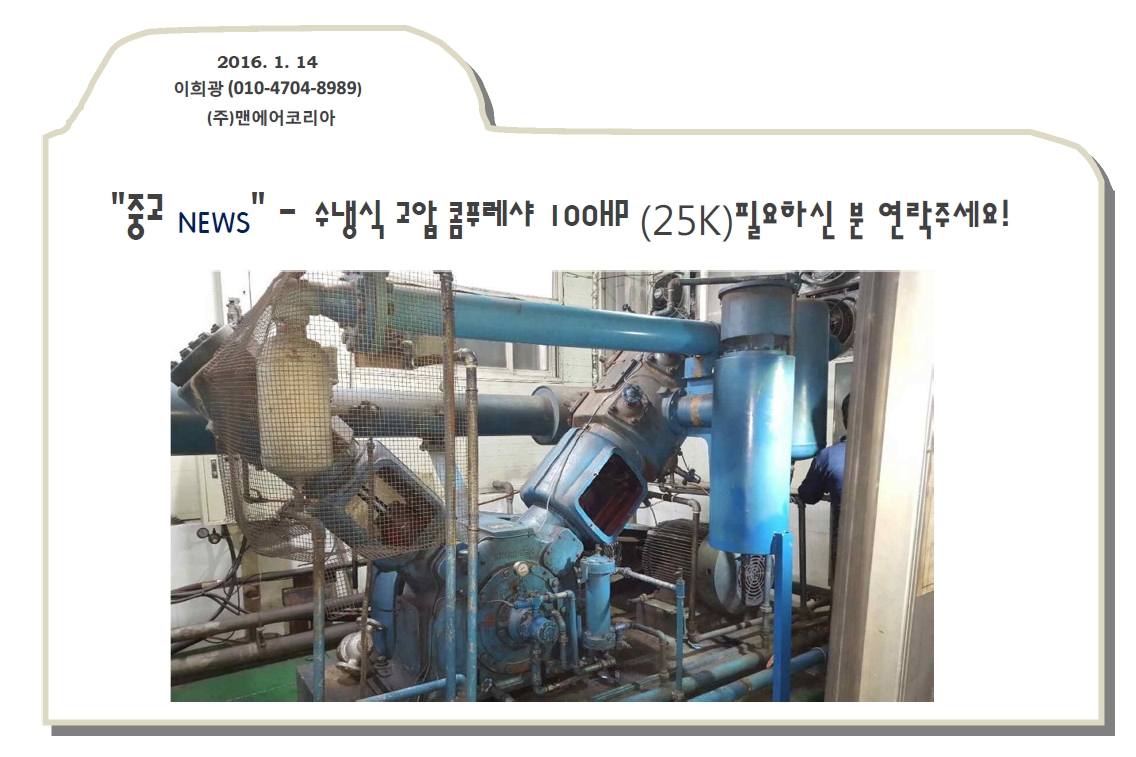 [중고]고압 수냉식 콤푸레샤 100HP (25k)