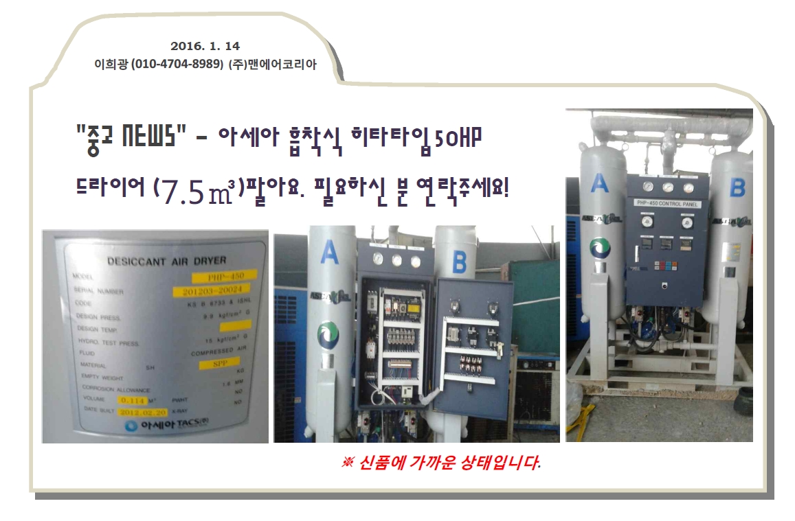 [중고]아세아흡착식 히타타입50HP 드라이어